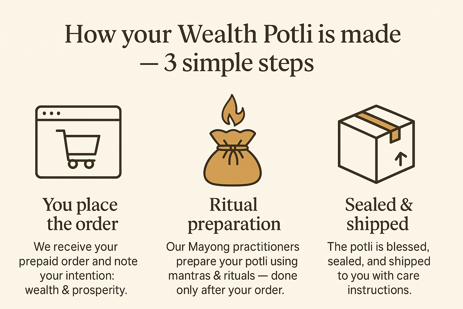 Manifest what you desire — handcrafted Tantric Potli specially for you with tantric rituals using your name.